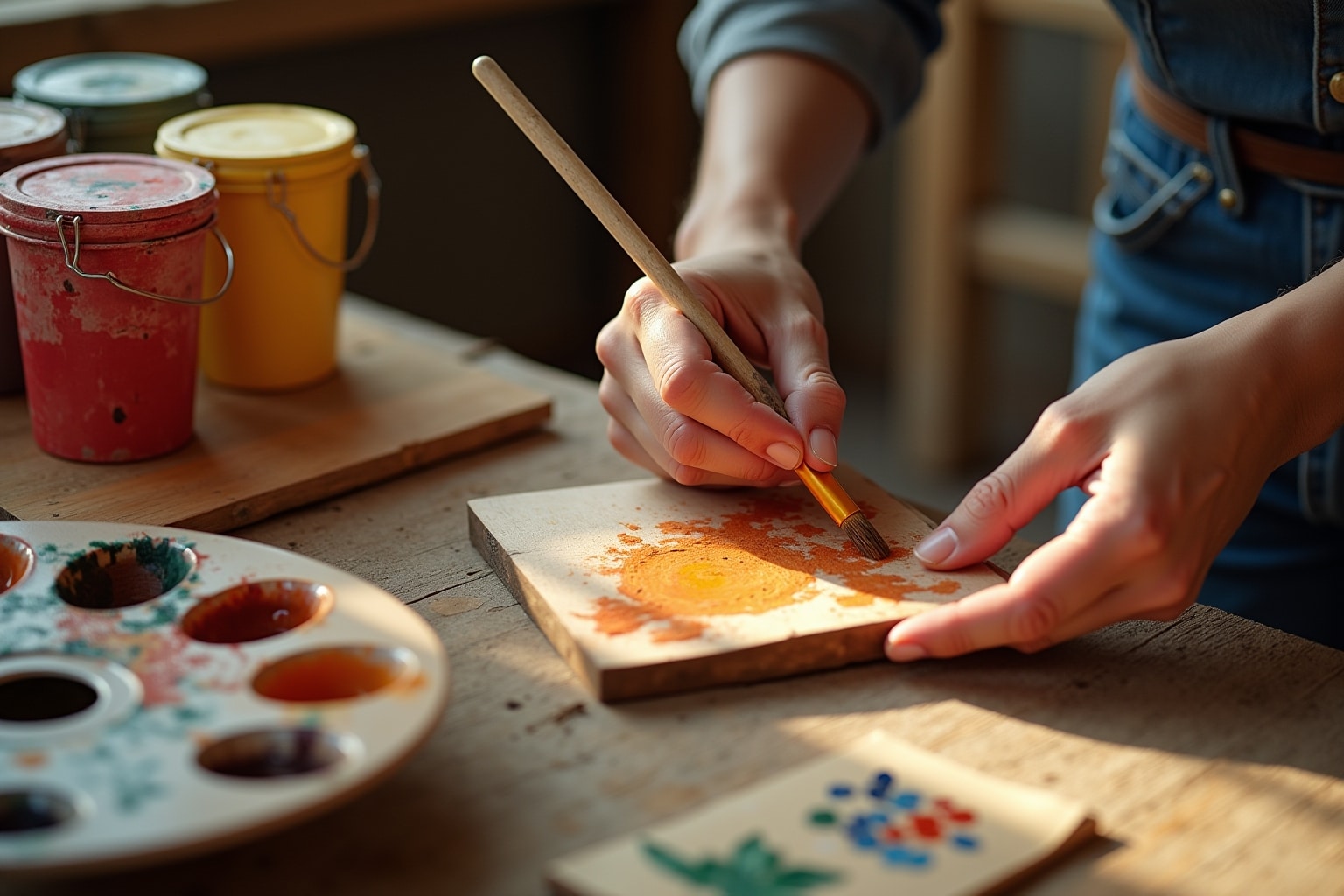 Staubfreier Raum: Lagere das frisch gestrichene Holz in einem staubfreien Raum, bis die Farbe vollständig getrocknet ist. Vermeide es, das Holz zu berühren oder zu belasten, um Abdrücke oder Kratzer zu vermeiden.