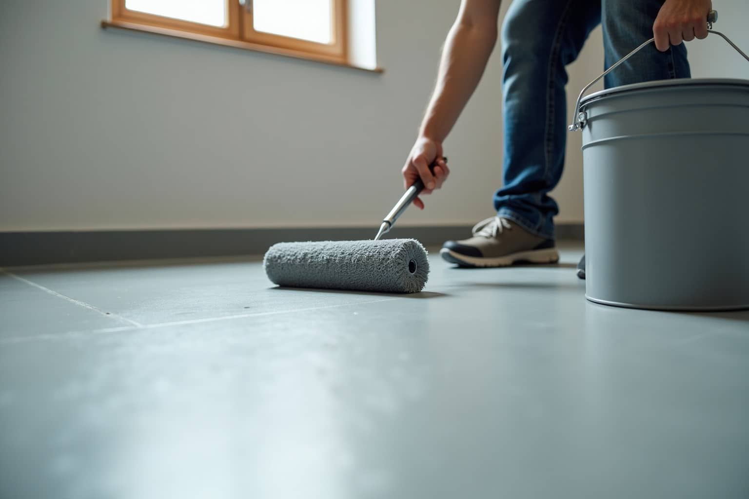 - Schleifen: Ein leichtes Anschleifen der Oberfläche mit einer Diamantschleifmaschine (bei sehr glatten Böden) oder Schleifpapier kann die Haftung der Farbe verbessern. Staub nach dem Schleifen gründlich absaugen.